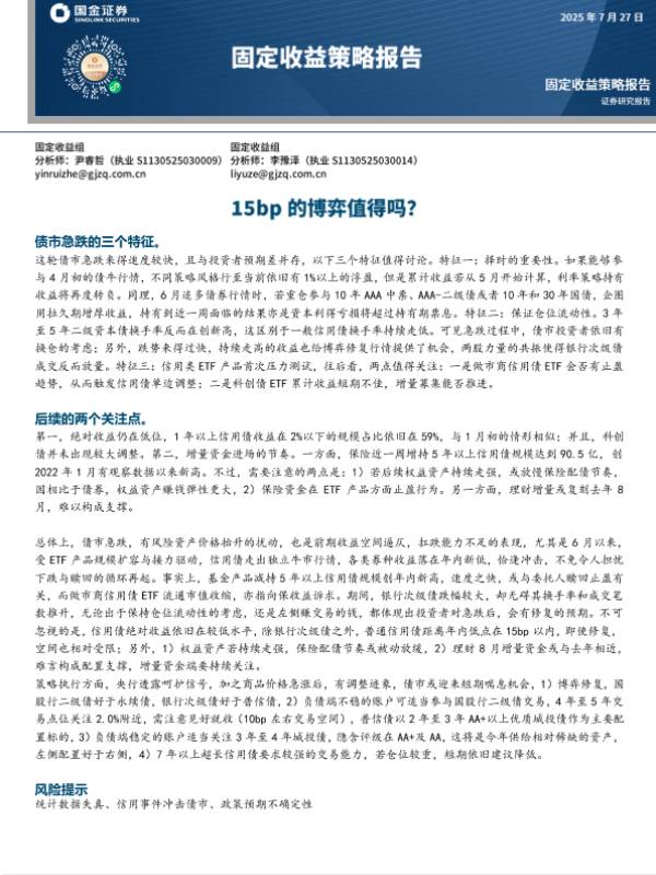 【国金证券】【202507】15bp的博弈值得吗?-15页 证券期货研究报告