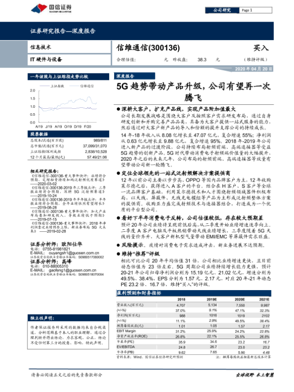 【国信证券】【20200420】受益5G趋势带动产品升级,公司有望再一次腾飞-34页 行业研究