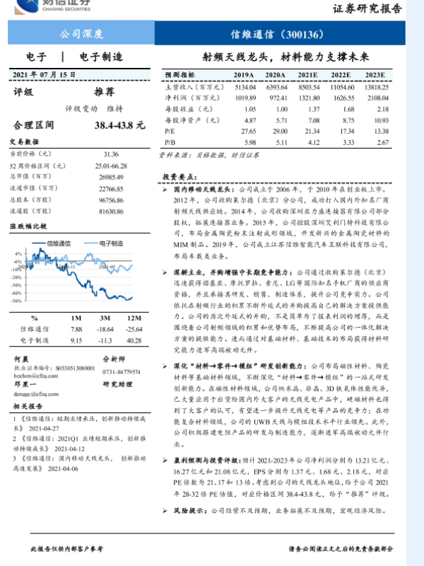 【财信证券】【20210715】信维通信-300136.SZ-射频天线龙头,材料能力支撑未来-24页 行业研究