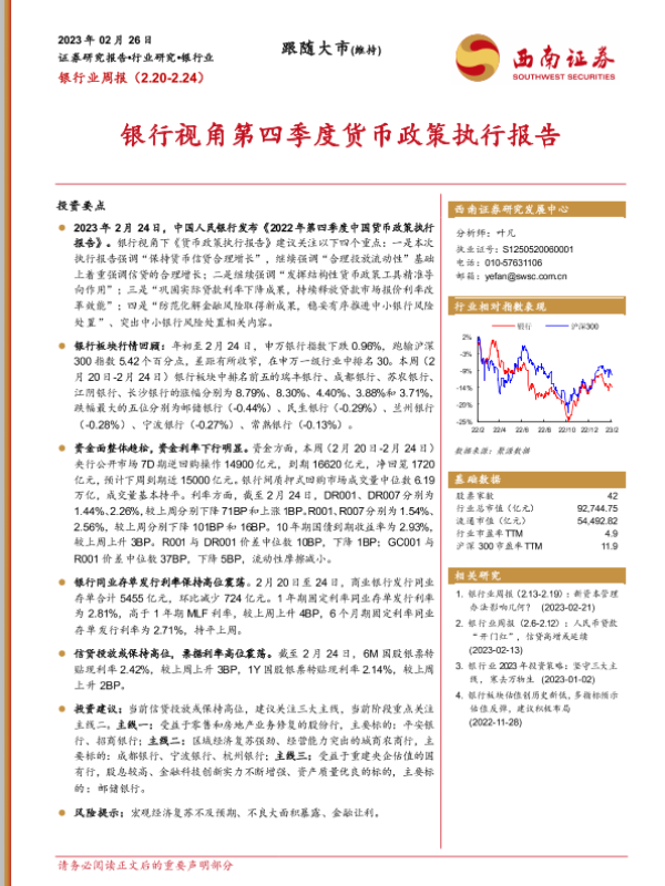 【西南证券】【20230226】银行业周报:银行视角第四季度货币政策执行报告-13页 行业研究