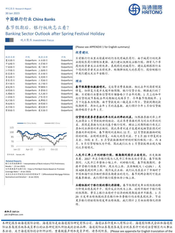 【海通国际】【20230130】中国银行行业:春节假期后,银行板块怎么看?-11页 行业研究