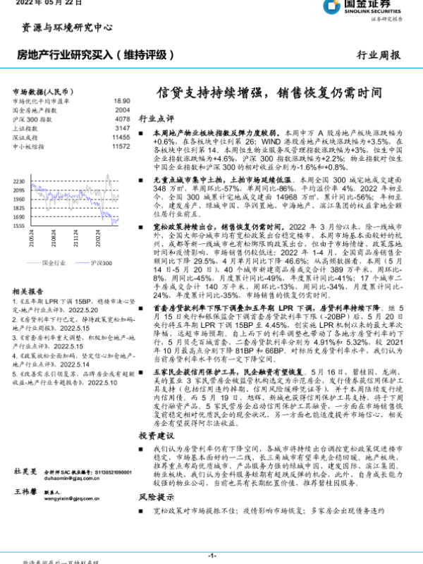 【国金证券】【20220522】房地产行业研究:信贷支持持续增强,销售恢复仍需时间-18页 行业研究