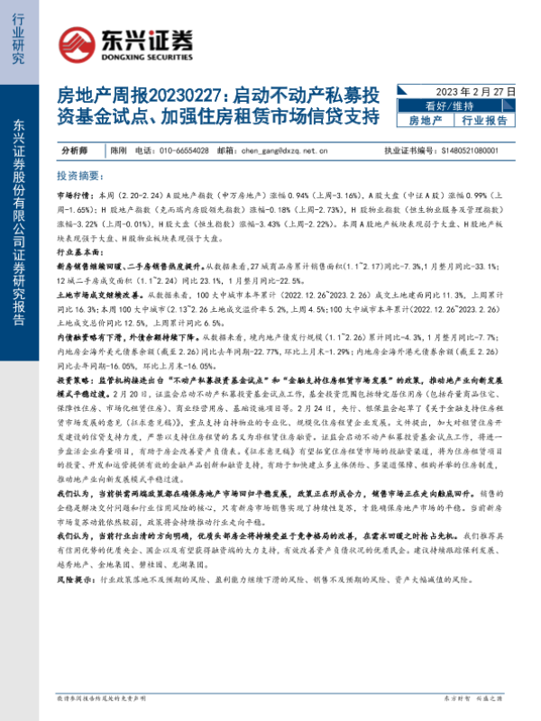 【东兴证券】【20230227】启动不动产私募投资基金试点、加强住房租赁市场信贷支持-20页 行业研究