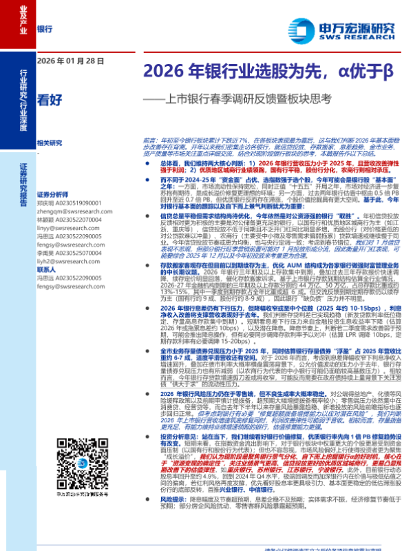 【申万宏源证券有限公司】【202602】2026年银行业选股为先,α优于β-23页 行业研究