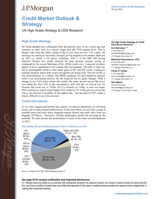 【J.P. Morgan】【20210730】J.P. 摩根-美股信贷策略-美国高评级战略与信用衍生品研究-39页 行业研究