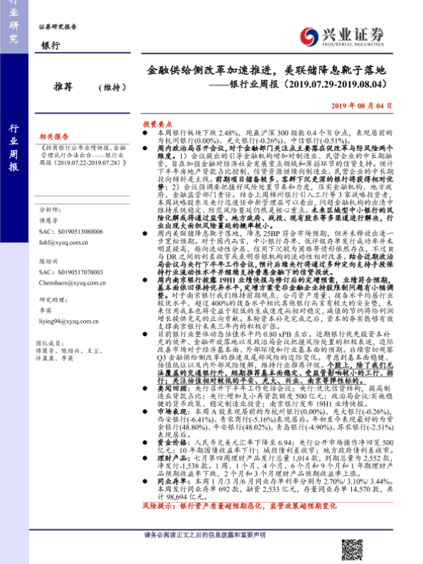 【兴业证券】【20190804】金融供给侧改革加速推进,美联储降息靴子落地-13页 行业研究