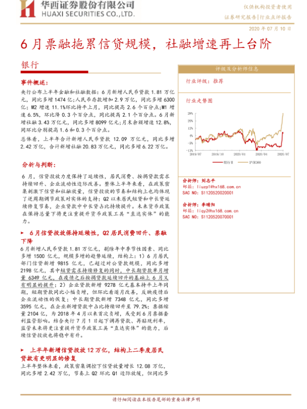 【华西证券】【20200710】6月票融拖累信贷规模,社融增速再上台阶-4页 行业研究