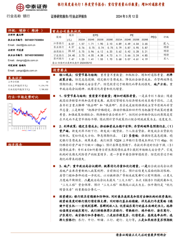 【中泰证券】【20240512】银行业角度看央行1季度货币报告:重信贷质量而非数量;增加对通胀考量-11页 行业研究
