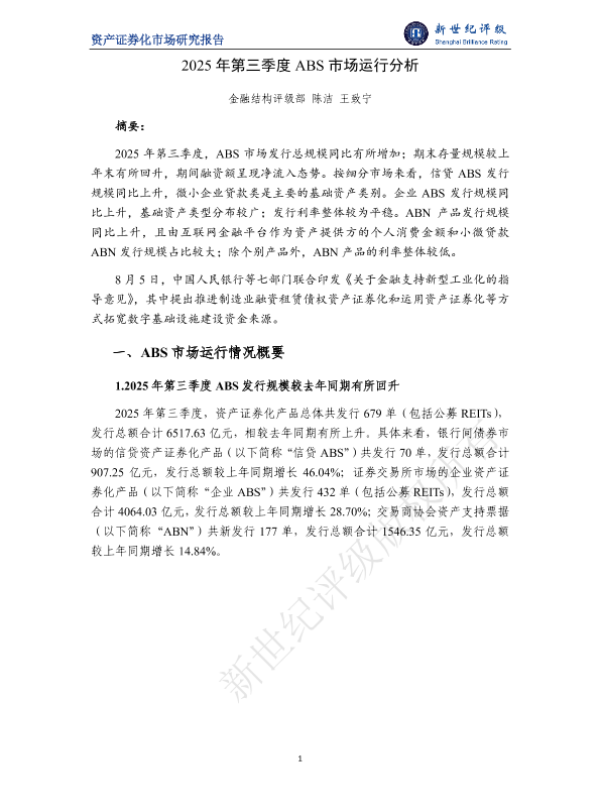 【金融结构评级部陈洁王致宁】【2025】2025年第三季度 ABS市场运行分析-8页 市场调研