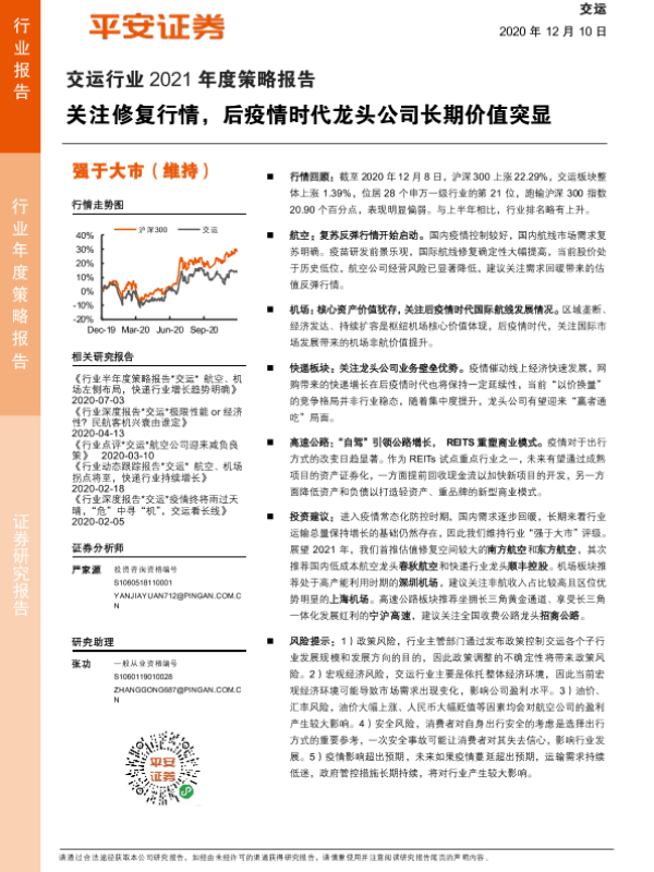 【平安证券】【20201210】交运行业2021年度策略报告:关注修复行情,后疫情时代龙头公司长期价值突显-27页 行业研究