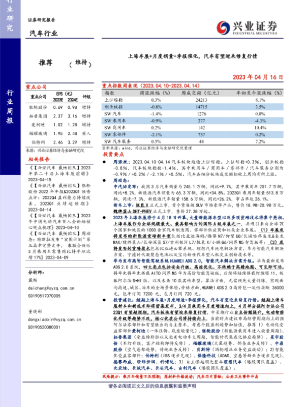 【兴业证券】【20230416】上海车展+月度销量+季报催化,汽车有望迎来修复行情-31页 行业研究