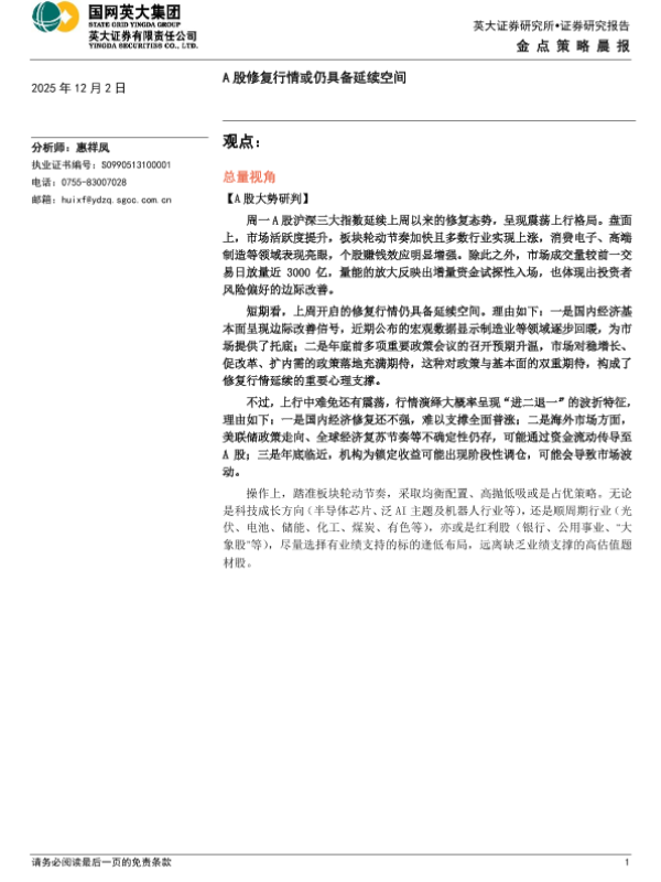 【英大证券】【202512】A股修复行情或仍具备延续空间-4页 证券期货研究报告