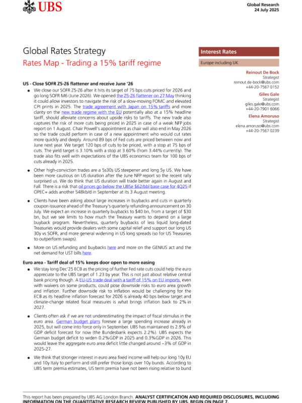 【UBS AG】【202507】Global Rates Strategy Rates Map-Trading a 15% tariff regime-10页 证券期货研究报告