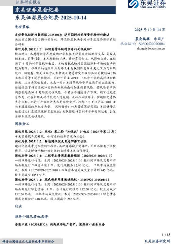 【东吴证券】【202510】东吴证券晨会纪要 2025-10-14-13页 会议纪要