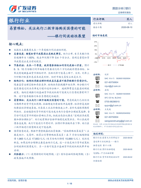 【广发证券】【20200810】银行间流动性展望:易紧难松,关注央行二级市场购买国债的可能-15页 行业研究