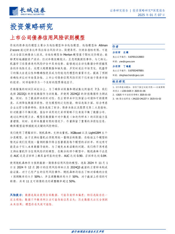 【长城证券】【20250107】投资策略研究:上市公司债券信用风险识别模型-24页 行业研究