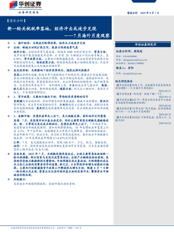 【华创证券】【202508】新一轮关税税率落地,经济冲击或逐步兑现 ——7月海外月度观察-20页 证券期货研究报告