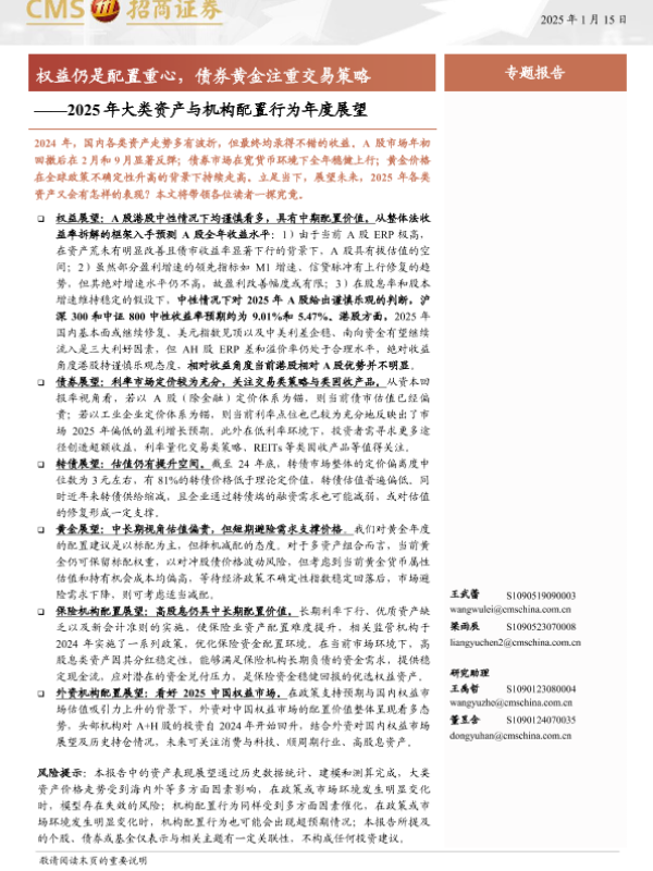 【海通证券】【20250115】2025年大类资产与机构配置行为年度展望:权益仍是配置重心,债券黄金注重交易策略-28页 宏观策略