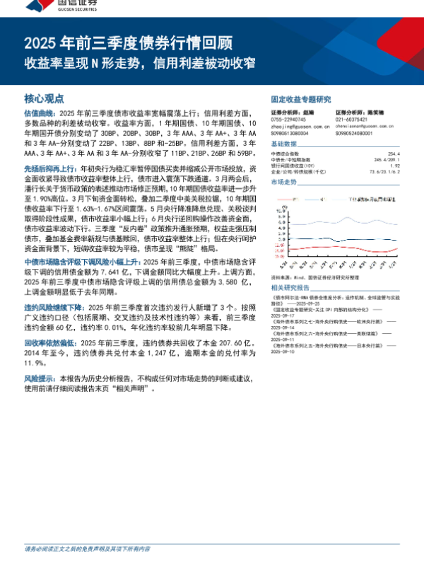 【国信证券】【202509】2025年前三季度债券行情回顾:收益率呈现N形走势,信用利差被动收窄-13页 证券期货研究报告