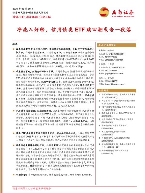 【西南证券】【202603】净流入好转,信用债类 ETF赎回潮或告一段落-16页 证券期货研究报告