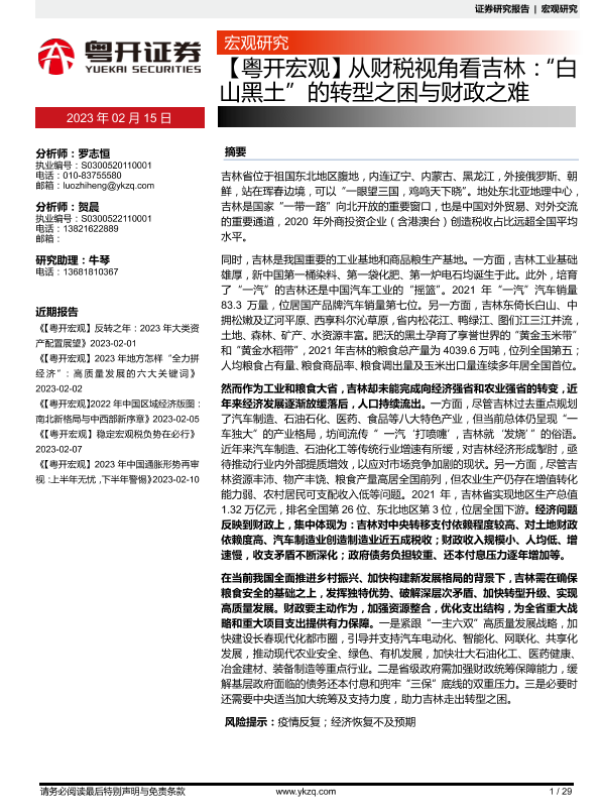 【粤开证券】【20230215】从财税视角看吉林:“白山黑土”的转型之困不财政之难-29页 行业研究