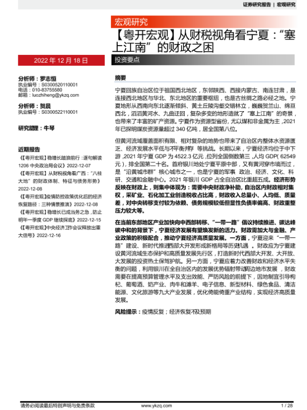 【粤开证券】【20221218】从财税视角看宁夏:“塞上江南”的财政之困-28页 行业研究