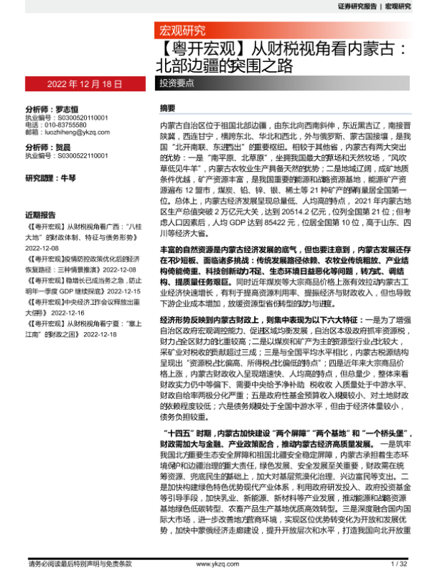 【粤开证券】【20221218】从财税视角看内蒙古:北部边疆的突围之路-32页 行业研究