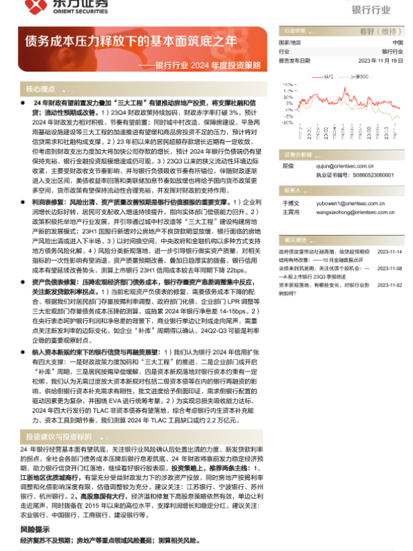 【东方证券】【20231119】银行行业2024年度投资策略:债务成本压力释放下的基本面筑底之年-33页 行业研究