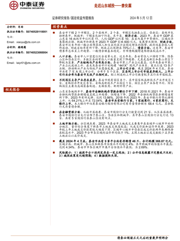 【中泰证券】【20240512】走近山东城投——泰安篇-30页 行业研究