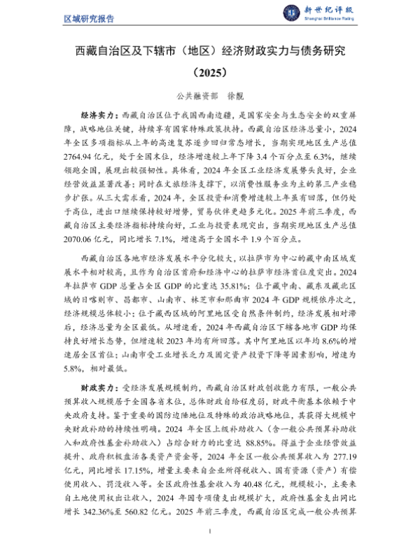 【公共融资部 徐靓】【2025】西藏自治区及下辖市(地区)经济财政实力与债务研究(2025)-16页 行业研究