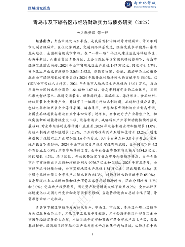 【公共融资部邵一静】【2025】青岛市及下辖各区市经济财政实力与债务研究(2025)-28页 行业研究