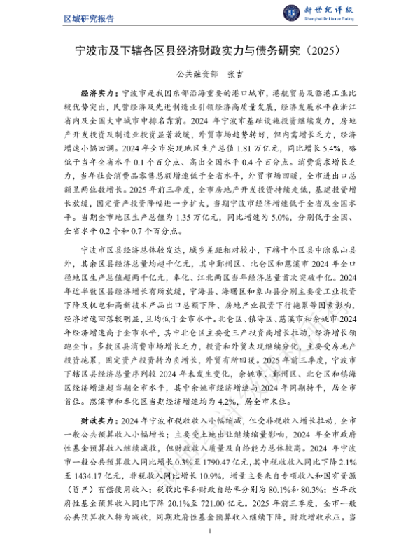 【公共融资部 张吉】【2025】宁波市及下辖各区县经济财政实力与债务研究(2025)-23页 行业研究