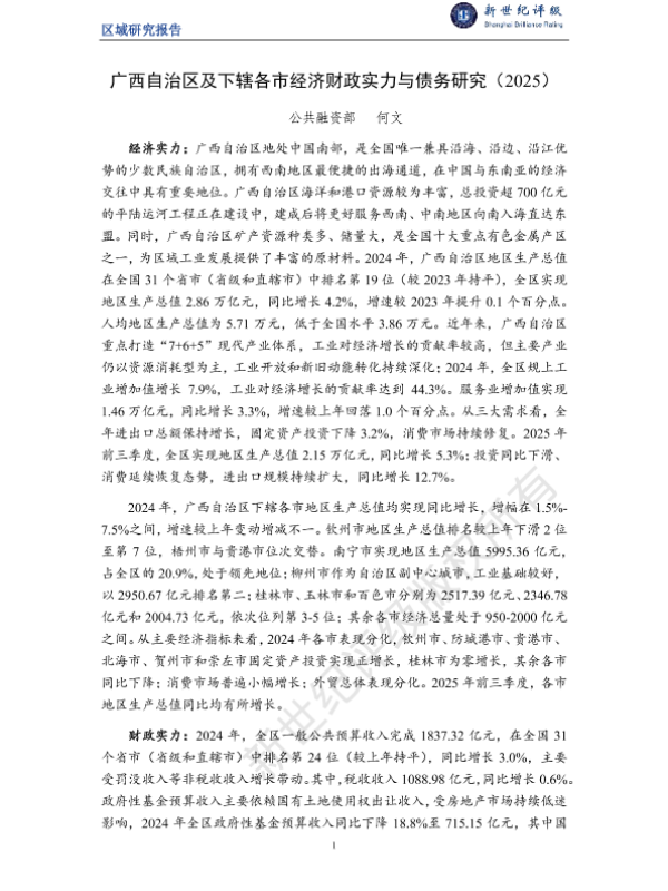 【公共融资部 何文】【2025】广西自治区及下辖各市经济财政实力与债务研究(2025)-31页 行业研究