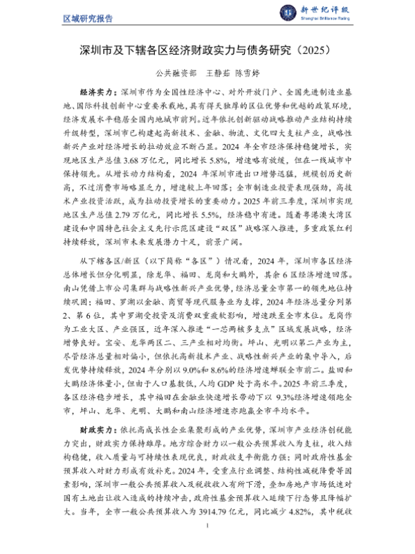 【公共融资部 王静茹陈雪婷】【2025】深圳市及下辖各区经济财政实力与债务研究(2025)-23页 行业研究