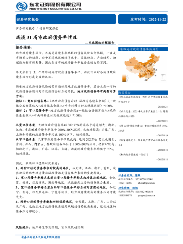 【东北证券】【20221122】浅谈31省市政府债务率情况-21页 行业研究
