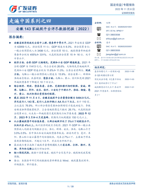【广发证券】【20221108】走遍中国系列之四:安徽143家城投平台详尽数据挖掘(2022)-33页 行业研究