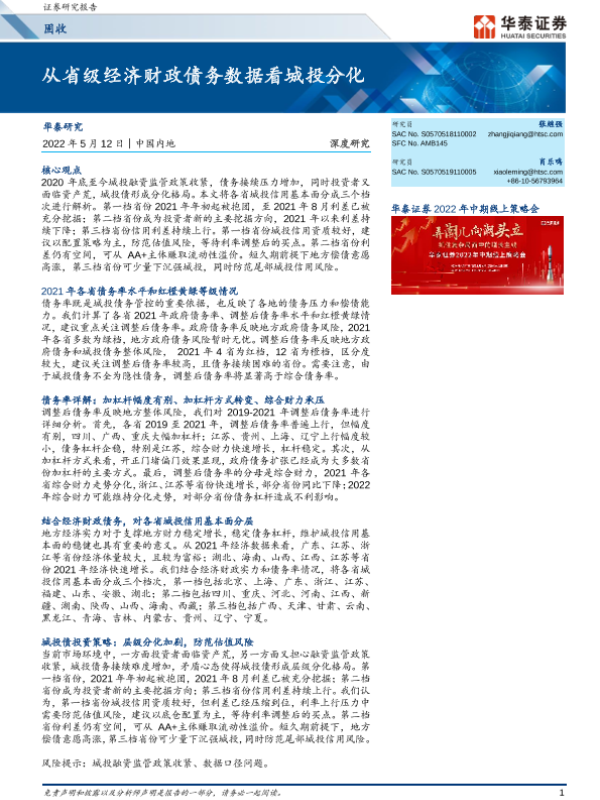 【华泰证券】【20220512】固收深度研究:从省级经济财政债务数据看城投分化-20页 行业研究