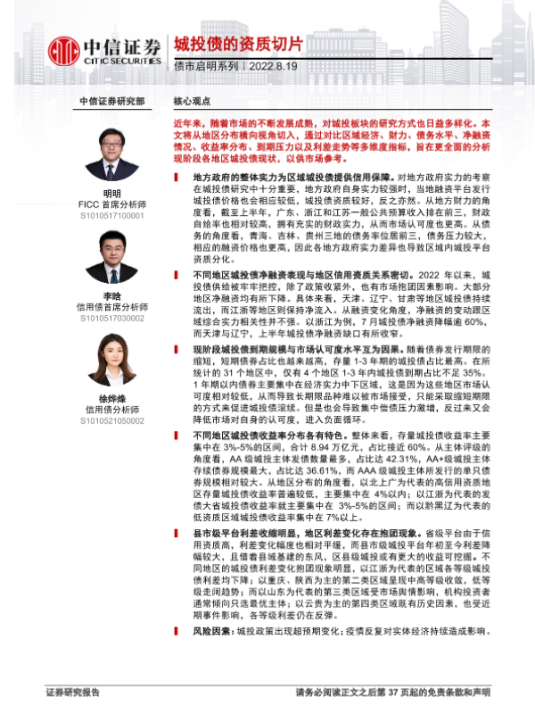 【中信证券】【20220819】债市启明系列:城投债的资质切片-38页 行业研究