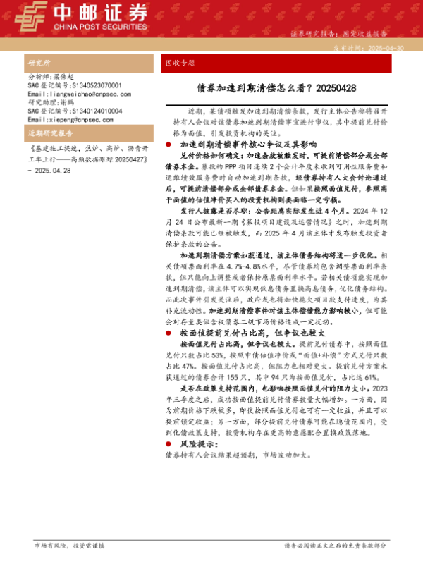 【中邮证券】【20250430】固收专题:债券加速到期清偿怎么看?-11页 证券期货研究报告