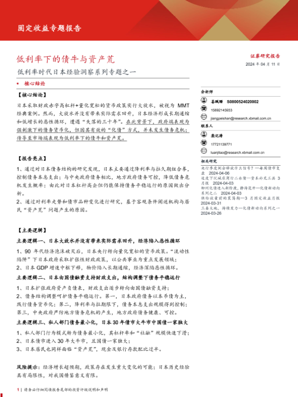 【西部证券】【20240411】低利率时代日本经验洞察系列专题之一:低利率下的债牛与资产荒-14页 行业研究