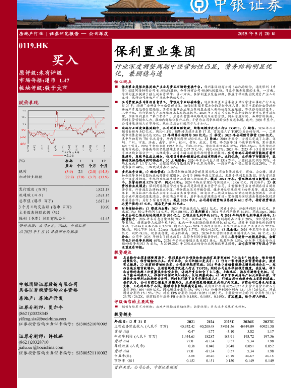 【中银证券】【20250520】保利置业集团行业深度调整周期中经营韧性凸显,债务结构明显优化,兼顾稳与进-41页 证券期货研究报告