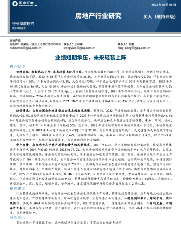 【国金证券】【20230507】2023-05-07-房地产行业深度研究-业绩短期承压-未来轻装上阵-18页 行业研究