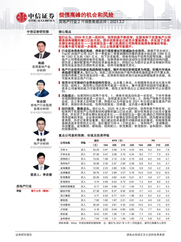 【中信证券】【20210302】房地产行业2月销售数据点评:偿债高峰的机会和风险-14页 行业研究
