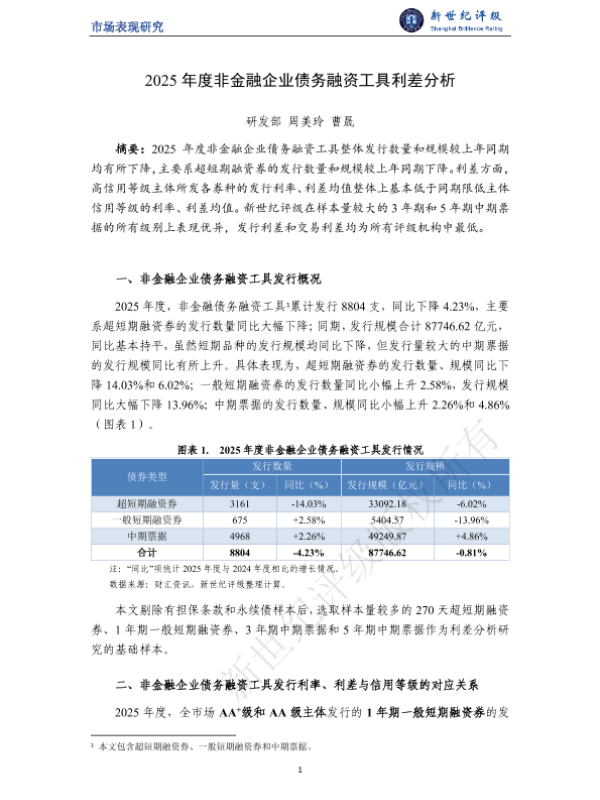 【新世纪评级】【2025】2025年度非金融企业债务融资工具利差分析-10页 市场调研