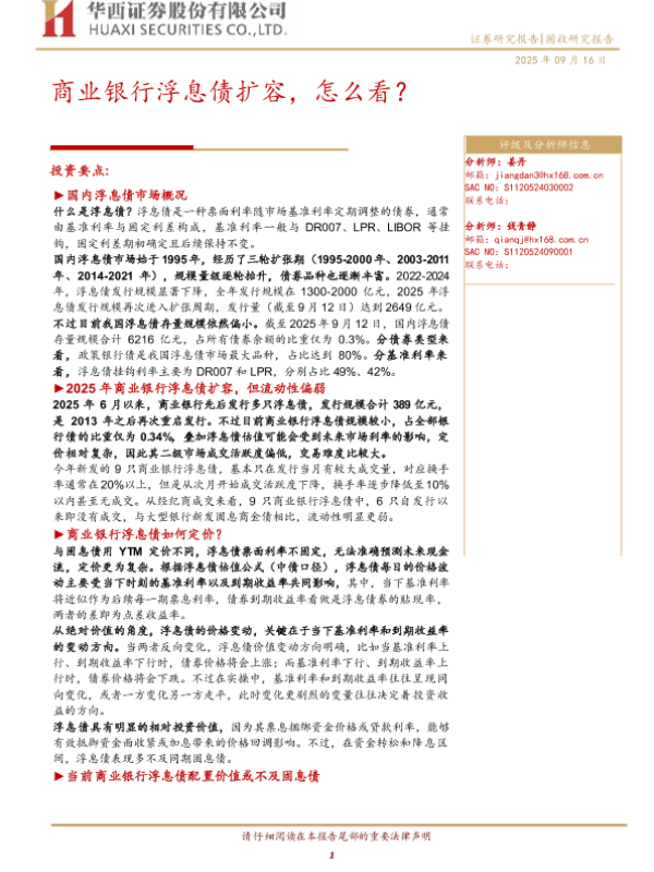 【华西证券】【202509】商业银行浮息债扩容,怎么看?-14页 证券期货研究报告