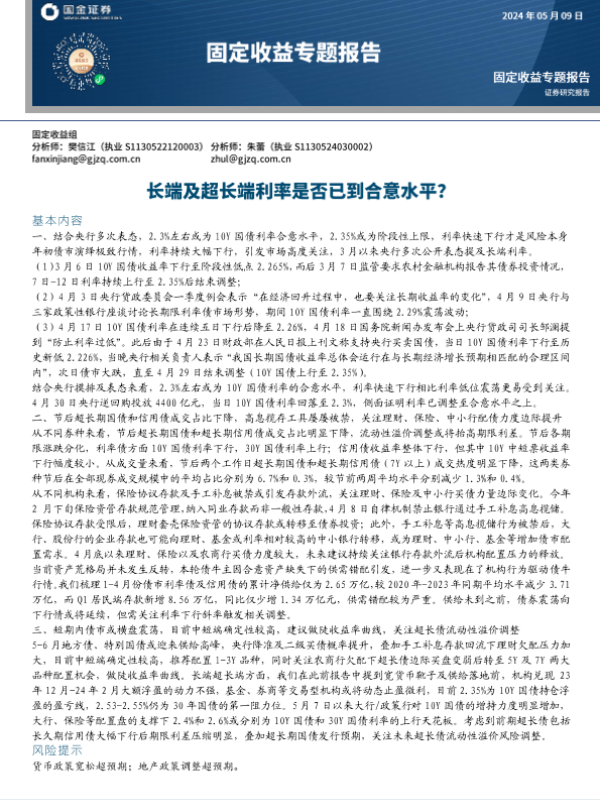 【国金证券】【20240509】固定收益专题报告:长端及超长端利率是否已到合意水平-14页 行业研究