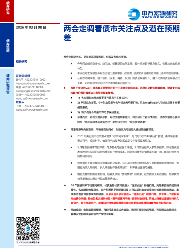 【申万宏源】【202603】两会定调看债市关注点及潜在预期差-13页 证券期货研究报告