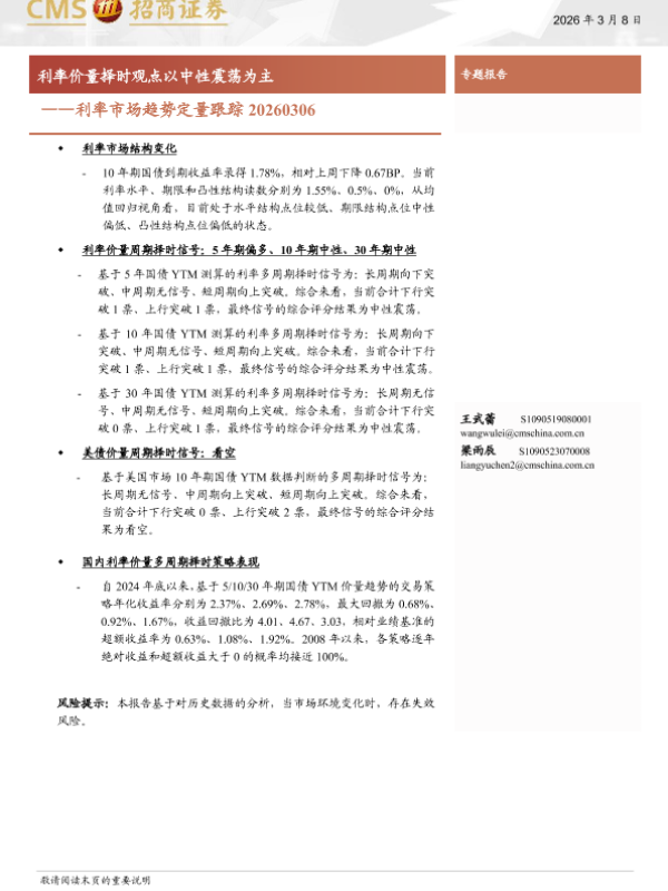 【海通证券】【202603】利率市场趋势定量跟踪 20260306-10页 证券期货研究报告
