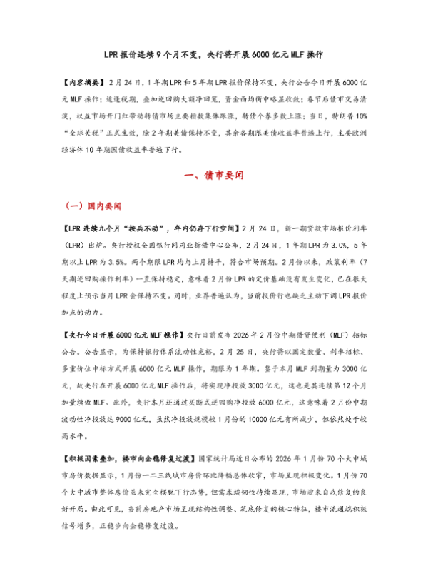 【东方金诚】【202602】LPR报价连续9个月不变,央行将开展6000亿元MLF操作-8页 证券期货研究报告