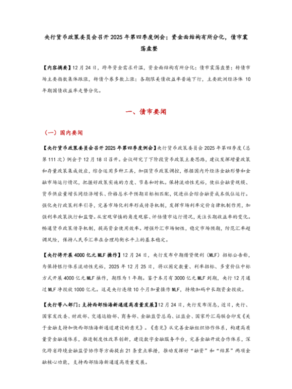 【东方金诚】【202512】央行货币政策委员会召开2025年第四季度例会;资金面结构有所分化_债市震荡盘整-8页 宏观策略